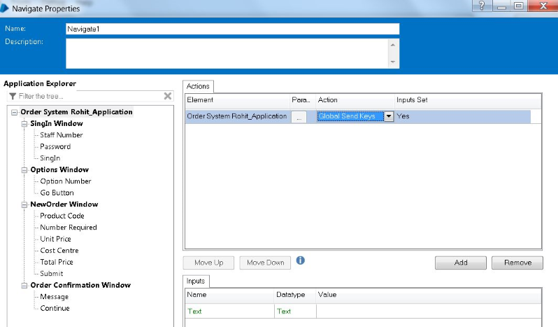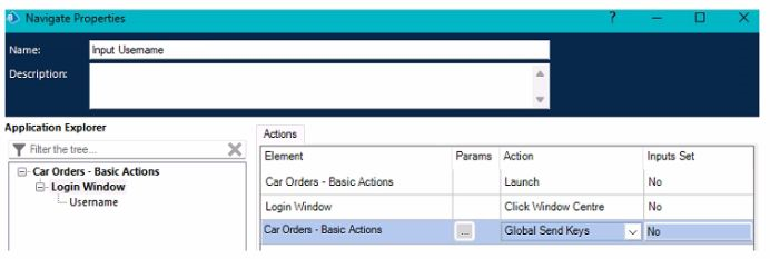 • Global Send Keys' action to populate the Username field.