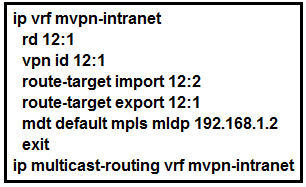 2. 192.168.1.2 must be reachable by all routers participating in the mvpn-intranet MVRF.