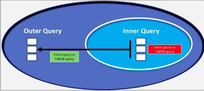 2. The outer query is the event query, and the inner query is the CMDB query.