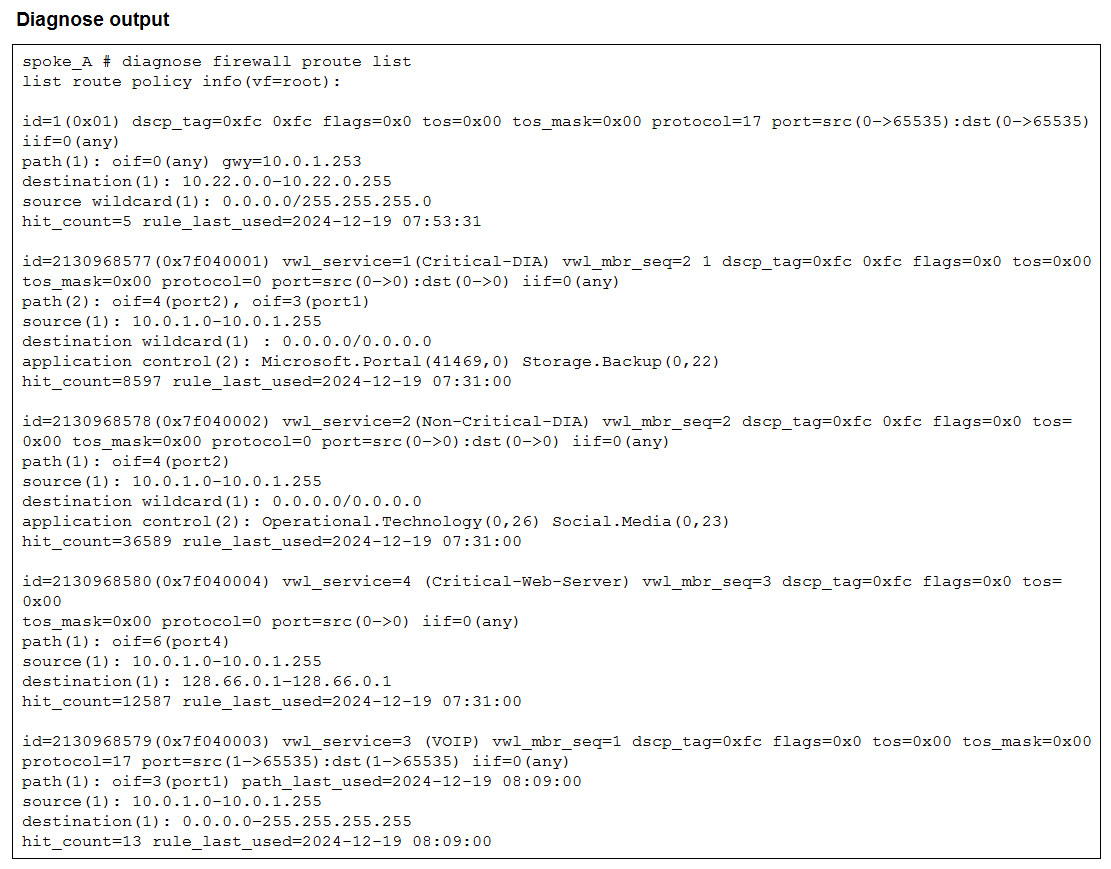 4. The diagnose output was collected on the device branch1_fgt