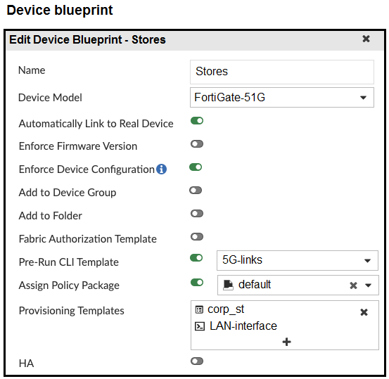 The administrator configured a device blueprint and CLI scripts as shown in the exhibits, to prepare for onboarding FortiGate devices in the company’s stores. Later, a technician prepares a FortiGate 51G with a basic configuration and connects it to the network. The basic configuration contains the port1 configuration and the minimal configuration required to allow the device to connect to FortiManager.