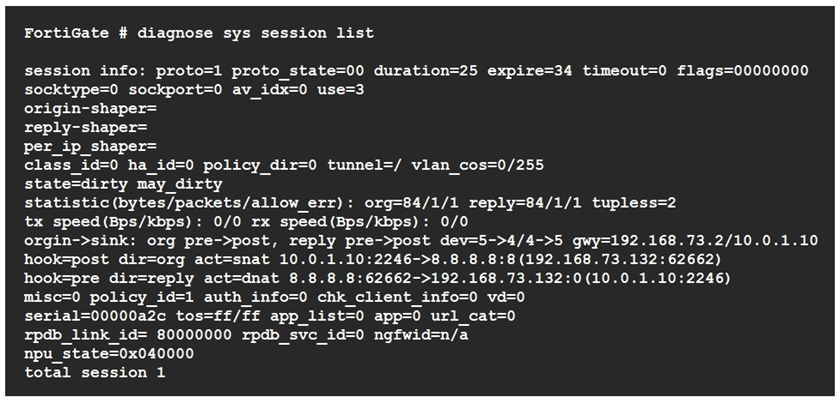 4. FortiGate has terminated the session after a change on policy ID 1.