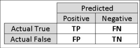The class labels in the training set can take on only two possible values, which we usually refer to as positive or negative. The positive and negative instances that a classifier predicts correctly are called true positives (TP) and true negatives (TN), respectively. Similarly, the incorrectly classified instances are called false positives (FP) and false negatives (FN).