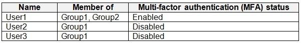 You have an Azure Active Directory (Azure AD) tenant that contains the users shown in the following table.