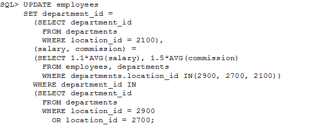 1. It generates an error because multiple columns (SALARY, COMMISSION) cannot be specified together in an UPDATE statement.