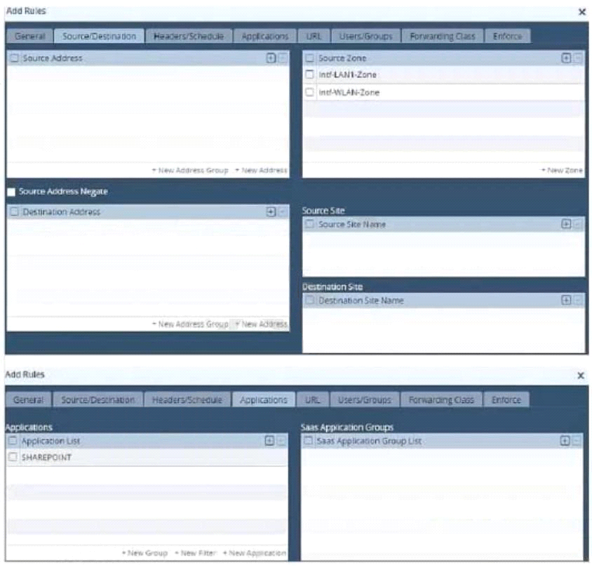 Which two parts in the SD-WAN policy rules are used to steer traffic? (Choose two.)